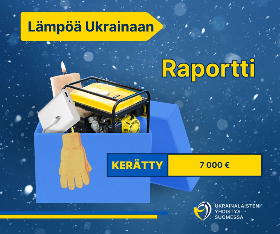 Поточний звіт Асоціація українців у Фінляндії разом із Посольством України в Фінляндії продовжує збір на генератори та зарядні станції для підтримки українських родин. Станом на сьогодні […]